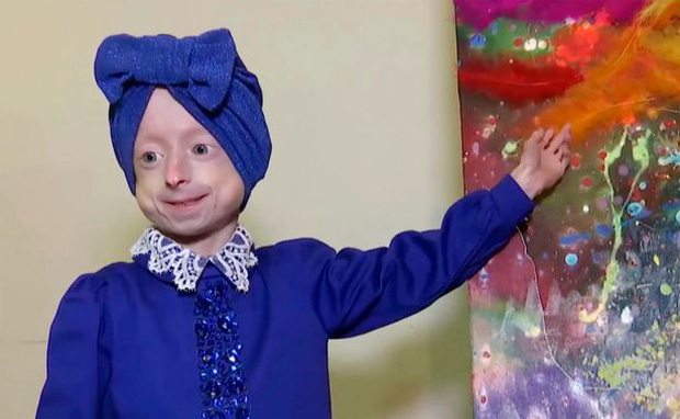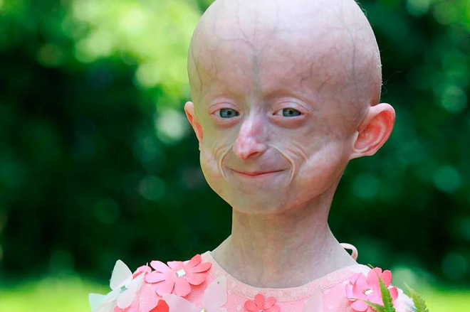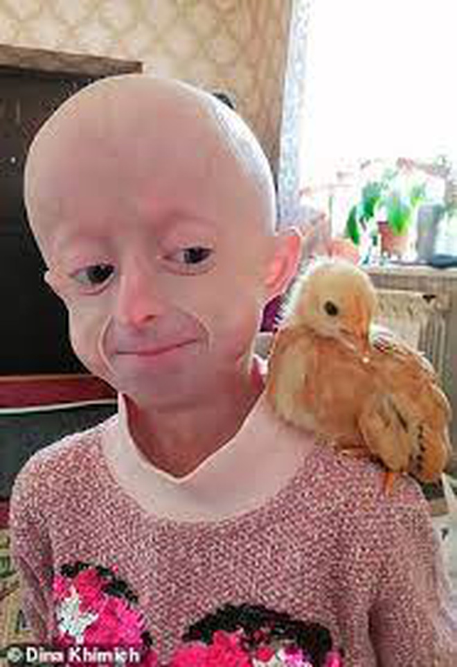Iryna Khimichi là bé gái 10 tuổi đến từ Ukraine. Từ khi sinh ra, em bị chẩn đoán mắc hội chứng progeria - một tình trạng di truyền khiến trẻ em già đi nhanh chóng. Dù mới 10 tuổi nhưng trông Iryna không khác gì cụ bà 80 do cứ một năm trôi qua, em sẽ bị lão hóa tương đương với 10 năm của người bình thường.