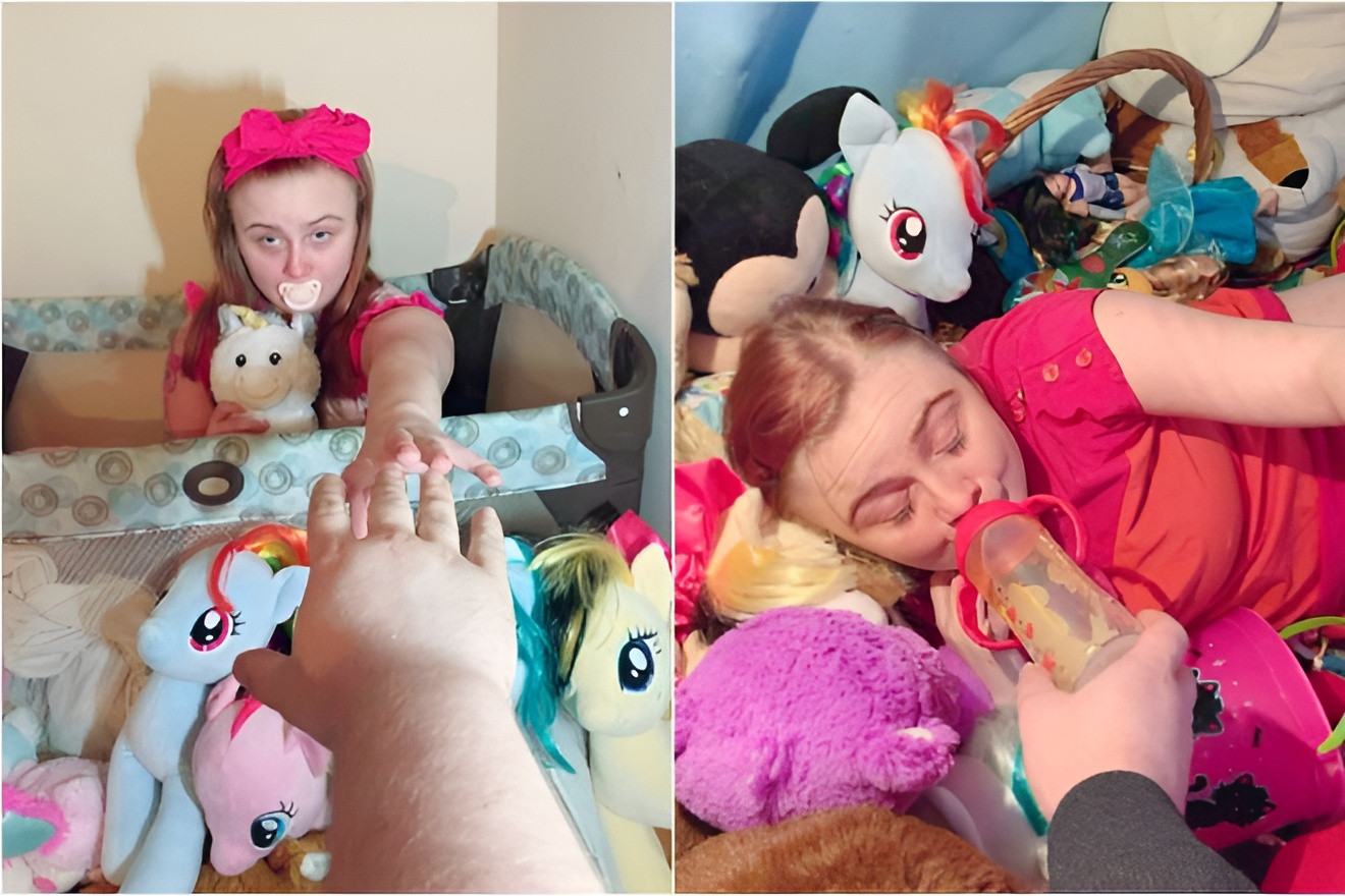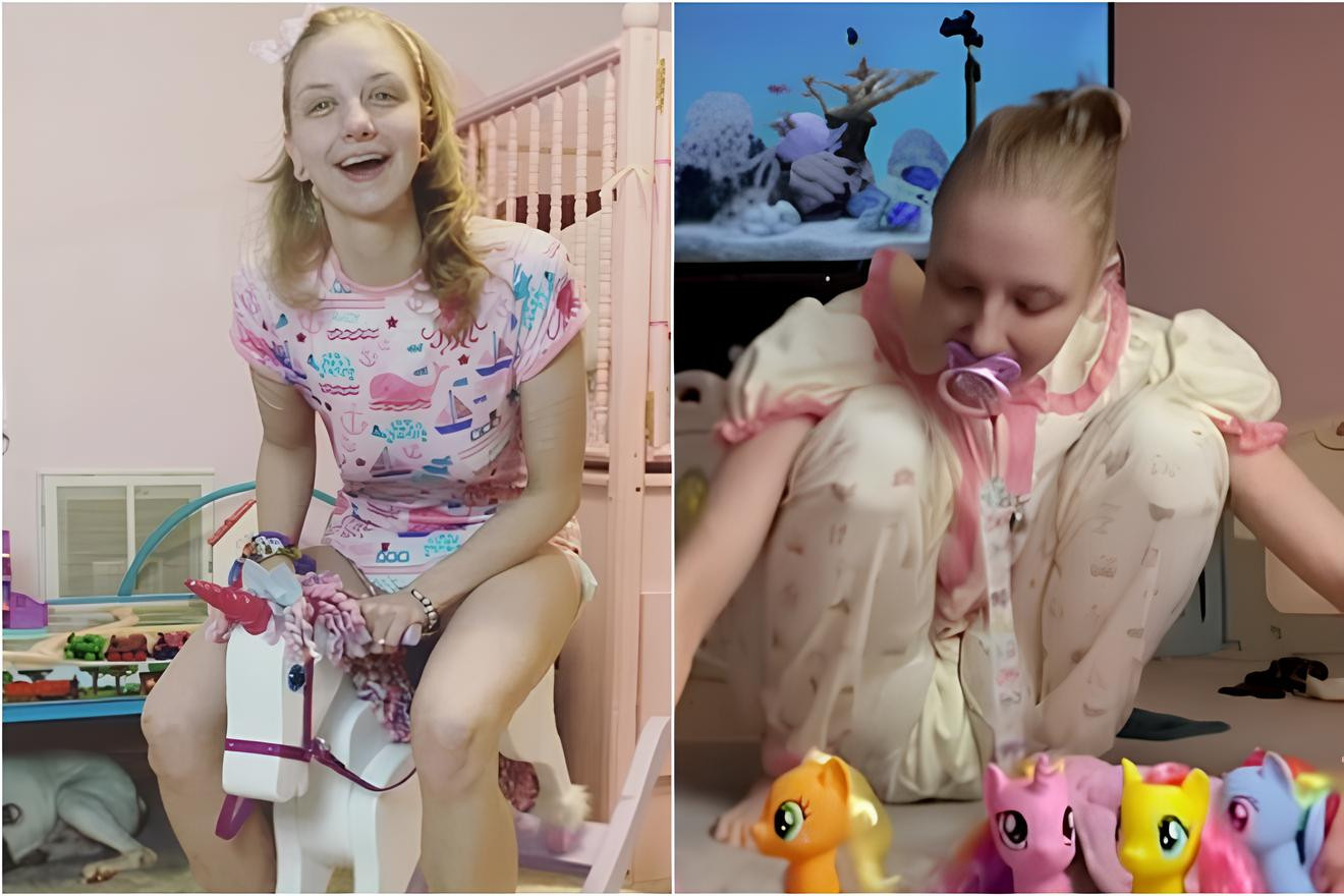 Lexi (27 tuổi) sống ở bang Indiana, Mỹ có thể dành cả ngày ở nhà để chơi đồ chơi, ngậm ti giả, xem phim hoạt hình và uống sữa. Cô gần như đóng bỉm cả ngày.