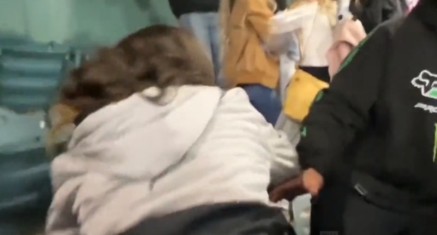 Gây bất ngờ nhất có lẽ là phản ứng của những khán giả xung quanh, khi nhiều người bắt đầu la ó, phản đối người phụ nữ thậm chí đã xuất hiện những lời lăng mạ. Tình huống ngày càng trở nên hỗn loạn, một vài vật thể lạ đã nhằm vào người phụ nữ mà bay đến.