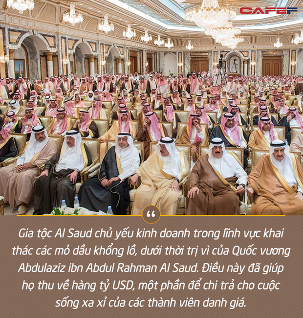 Trong vài thập niên trước đây, dầu mỏ là loại hàng hóa được giao dịch rất nhiều với mức giá tăng mạnh. Gia tộc Al Saud chủ yếu kinh doanh trong lĩnh vực khai thác các mỏ dầu khổng lồ, dưới thời trị vì của quốc vương Abdulaziz bin Abdul Rahman Al Saud. Điều này đã giúp họ thu về hàng tỷ USD, một phần để chi trả cho cuộc sống xa xỉ của các thành viên danh giá.