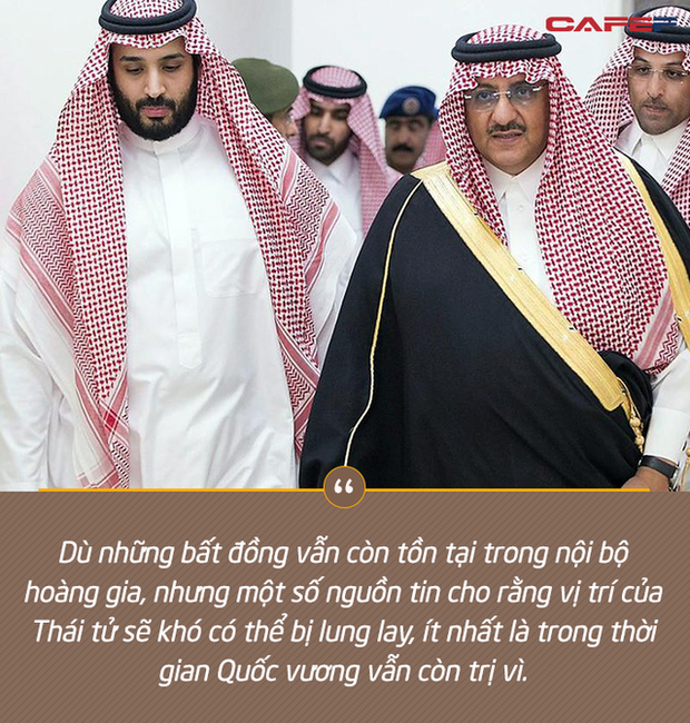 Dù những bất đồng vẫn còn tồn tại trong nội bộ hoàng gia, nhưng một số nguồn tin cho rằng vị trí của Thái tử sẽ khó có thể bị lung lay, ít nhất là trong thời gian Quốc vương vẫn còn trị vì. Ngoài ra, ông bin Salman còn nhận được sự ủng hộ khá nhiệt tình từ người dân Ả rập Xê út, đặc biệt là thế hệ trẻ nhờ tư tưởng tiến bộ và mục tiêu đưa đất nước trở nên hiện đại hơn.