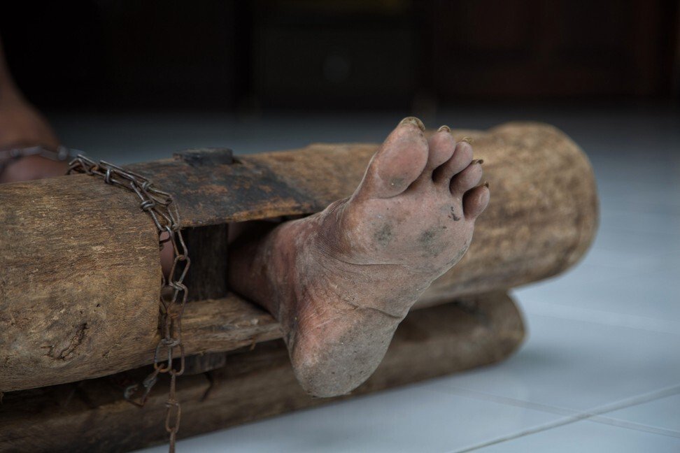 Pasung được coi là phương pháp điều trị tâm thần kinh khủng nhất nhì Indonesia. Cụ thể, người bệnh sẽ bị lột sạch quần áo và không được quyền tắm rửa. Tiếp đó, tay chân họ cũng bị trói bằng đủ loại xiềng xích rồi phải chịu cảnh giam giữ trong lồng sắt suốt vài tháng hoặc thậm chí là vài năm trời.