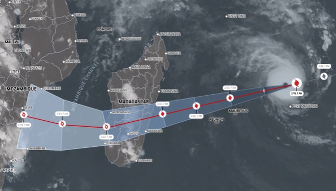 Theo AccuWeather, tối 19-2 (giờ địa phương), cơn bão đang ở cách đảo Reunion khoảng 875 km về phía Đông - Đông Bắc với sức mạnh tương đương một cơn bão cấp 4 trên thang đo Saffir-Simpson.