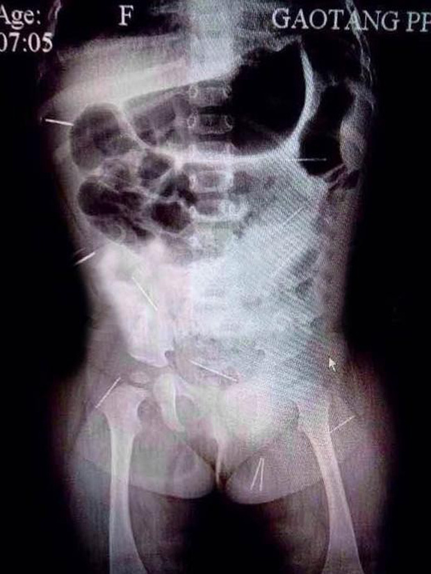 Trong hình chụp cho thấy, những chiếc kim bị đâm vào mông, khoang bụng, xương chậu và nhiều bộ phận quan trọng khác trên người cô bé đáng thương. Nhận thấy vụ việc không hề đơn giản. Gia đình Tử Huyên đã báo cảnh sát can thiệp.
