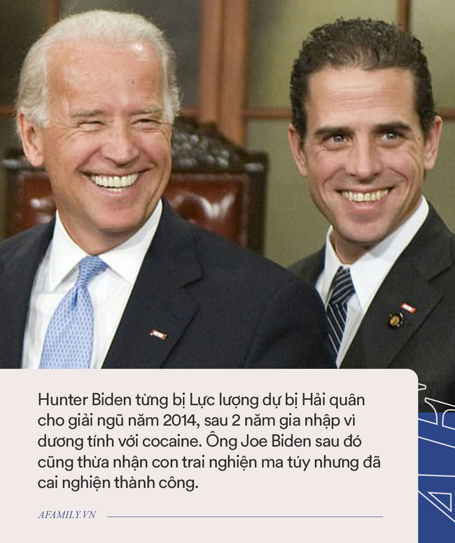 Theo đó Hunter Biden từng bị Lực lượng dự bị Hải quân cho giải ngũ năm 2014, sau 2 năm gia nhập vì dương tính với cocaine. Ông Joe Biden sau đó cũng thừa nhận con trai nghiện ma túy nhưng đã cai nghiện thành công.