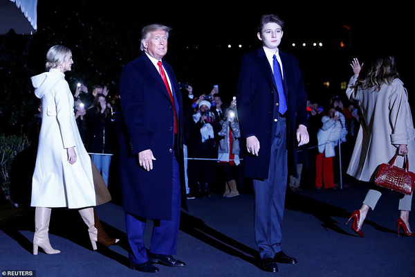 Trong không khí rộn ràng chào đón Giáng sinh mừng năm mới của gia đình Tổng thống Trump ấy, nhiều người vẫn băn khoăn khi không nhìn thấy Barron Trump. Được biết, lần xuất hiện gần đây Barron là khi cậu đi du lịch đến khu nghỉ mát Palm Beach ở Floria vào ngày 20/12 cùng với gia đình. Lần cuối cùng truyền thông và công chúng nhìn thấy sự xuất hiện của con trai út nhà Trump là khi cậu cùng cha mẹ và chị gái Ivanka Trump di chuyển đến khu bất động sản Mar-a-Lago để nghỉ lễ.
