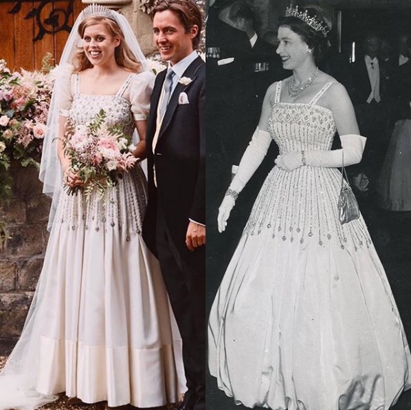 Đặc biệt, vương miện và váy cưới của Công chúa Beatrice đã gây chú ý hơn cả. Nàng công chúa 31 tuổi đã lựa chọn vương miện và mặc chiếc váy cưới phong cách vintage mà Nữ hoàng từng diện trong một sự kiện cách đây 60 năm. Qua đây có thể thấy tình cảm đặc biệt của công chúa nước Anh dành cho người bà đáng kính của mình.