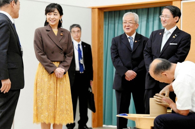Góp mặt trong sự kiện, Công chúa Kako nổi bật với chiếc đầm màu vàng sáng cùng áo khoác nâu thanh lịch, trang điểm nhẹ nhàng cùng phụ kiện nhỏ cùng tông vô cùng tinh tế. Cô được nhận xét là xinh đẹp và tỏa sáng đặc biệt ở sự kiện lần này.
