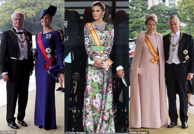 Thái tử Charles của nước Anh, vợ chồng Đức vua Hà Lan, Nhà vua và Công chúa Thụy điển, vợ chồng Quốc vương Bỉ, vợ chồng Quốc vương Bhutan... là những gương mặt hoàng gia có mặt sớm nhất trong lễ đăng quang của Nhật hoàng. Đặc biệt, Hoàng hậu Bhutan trở thành tâm điểm chú ý bởi vẻ đẹp hoàn hảo của mình.