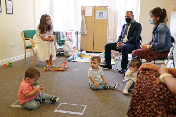 Tại đây, Công nương Kate đã lắng nghe những khó khăn của một số gia đình trong thời điểm dịch Covid-19 đang ảnh hưởng nặng nề đến đời sống xã hội. Bà mẹ 3 con đeo khẩu trang và tuân thủ khoảng cách nhất định khi trò chuyện với các cha mẹ.