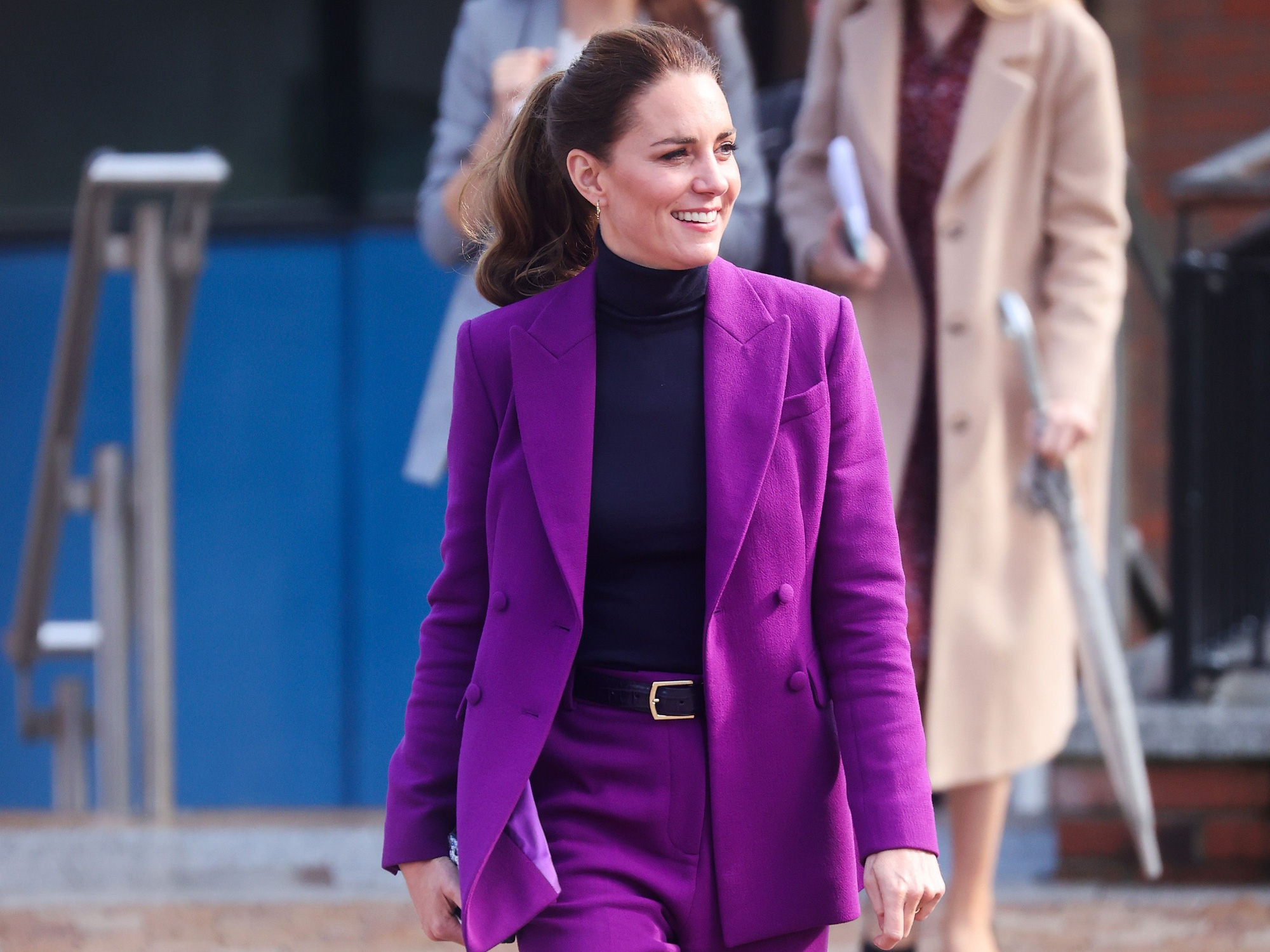 Vào ngày 29/9, Công nương Kate cùng chồng đã có chuyến thăm tới Đại học Ulster, Bắc Ireland để gặp gỡ và trò chuyện với các sinh viên tại đây. Bà mẹ 3 con xuất hiện nổi bật với bộ đồ suit thanh lịch màu tím của nhà thiết kế Emilia Wickstead kết hợp với áo cao cổ màu đen phù hợp với tiết trời khá lạnh.
