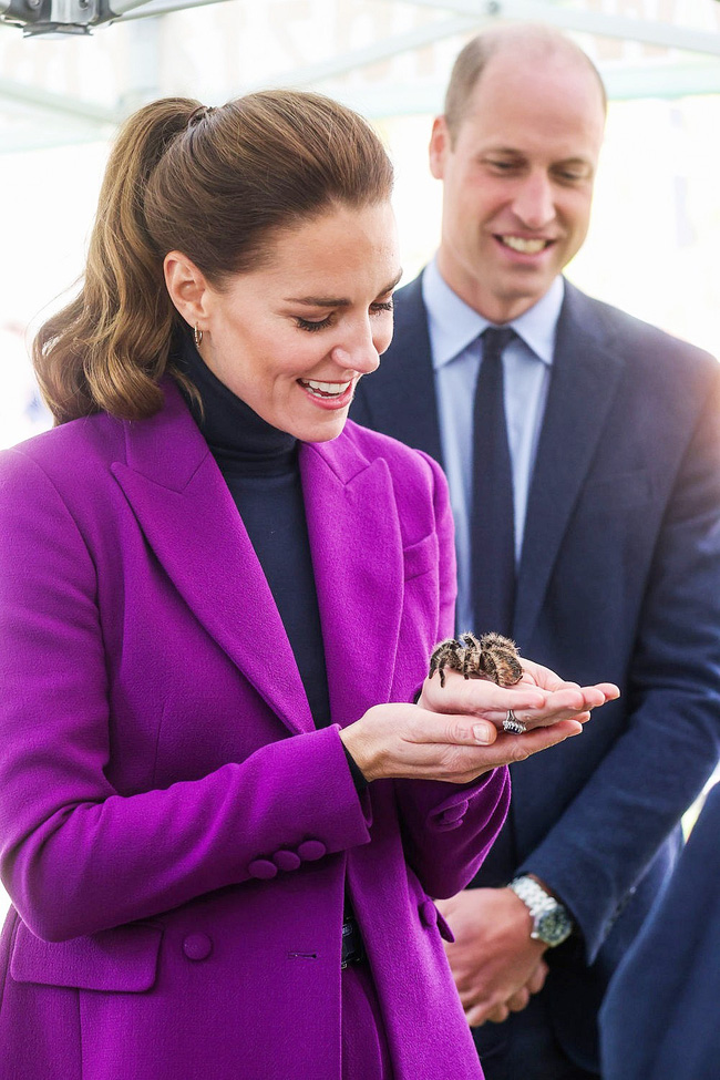 Khi tiếp xúc với sinh viên y khoa, cặp đôi được mời sờ thử một số con vật đang được dùng để nghiên cứu. Công nương Kate đã có hành động táo bạo khi cầm trên tay một con nhện tarantula màu đen còn những người xung quanh thì tỏ ra e dè. Ngay cả Hoàng tử William cũng không động đến con vật có bề ngoài xù xì, đáng sợ này.