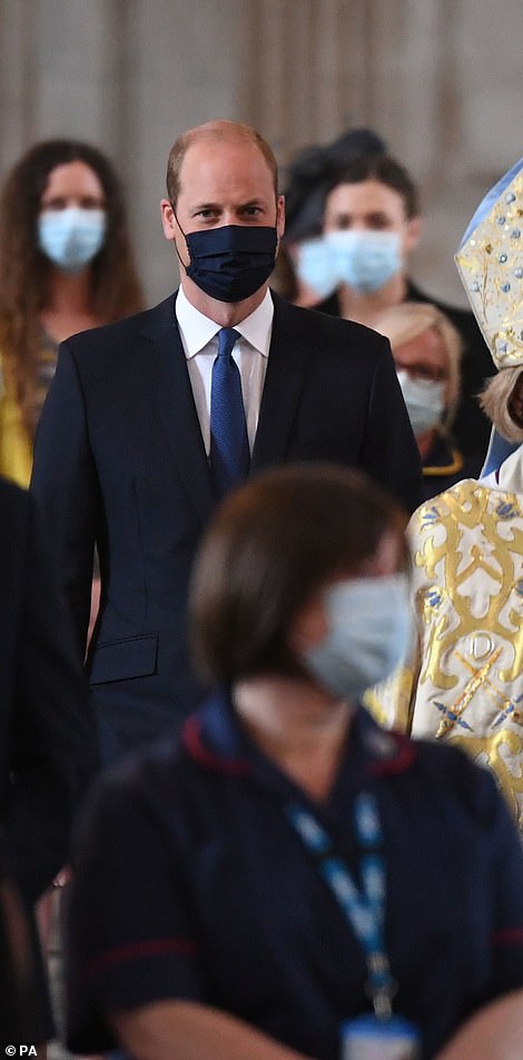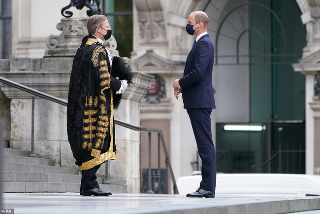 Không lâu sau thông báo của cung điện, Hoàng tử William được trông thấy xuất hiện lẻ loi một mình tại sự kiện. Công tước xứ Cambridge đã đến Nhà thờ St Paul để làm lễ buổi sáng, Thủ tướng Anh và Tân Bộ trưởng Y tế cũng có mặt tại đây. Ông bố 3 con mặc vest lịch lãm và đeo khẩu trang tối màu. Hoàng tử William không chia sẻ tình hình hiện tại của vợ.
