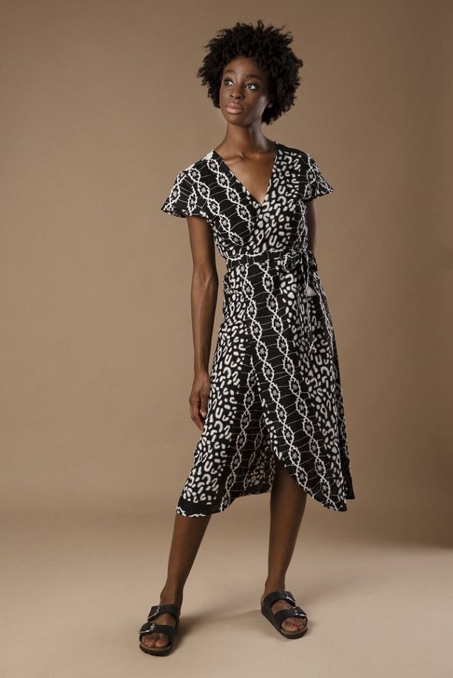 Meghan Markle sánh vai cùng chồng đi công du ở Cape Town, Nam Phi trong chiếc váy mỏng manh màu đen họa tiết hơi hướng thổ cẩm trị giá 69 Bảng Anh ( tầm 2 triệu đồng) đến từ hãng Mayamiko.