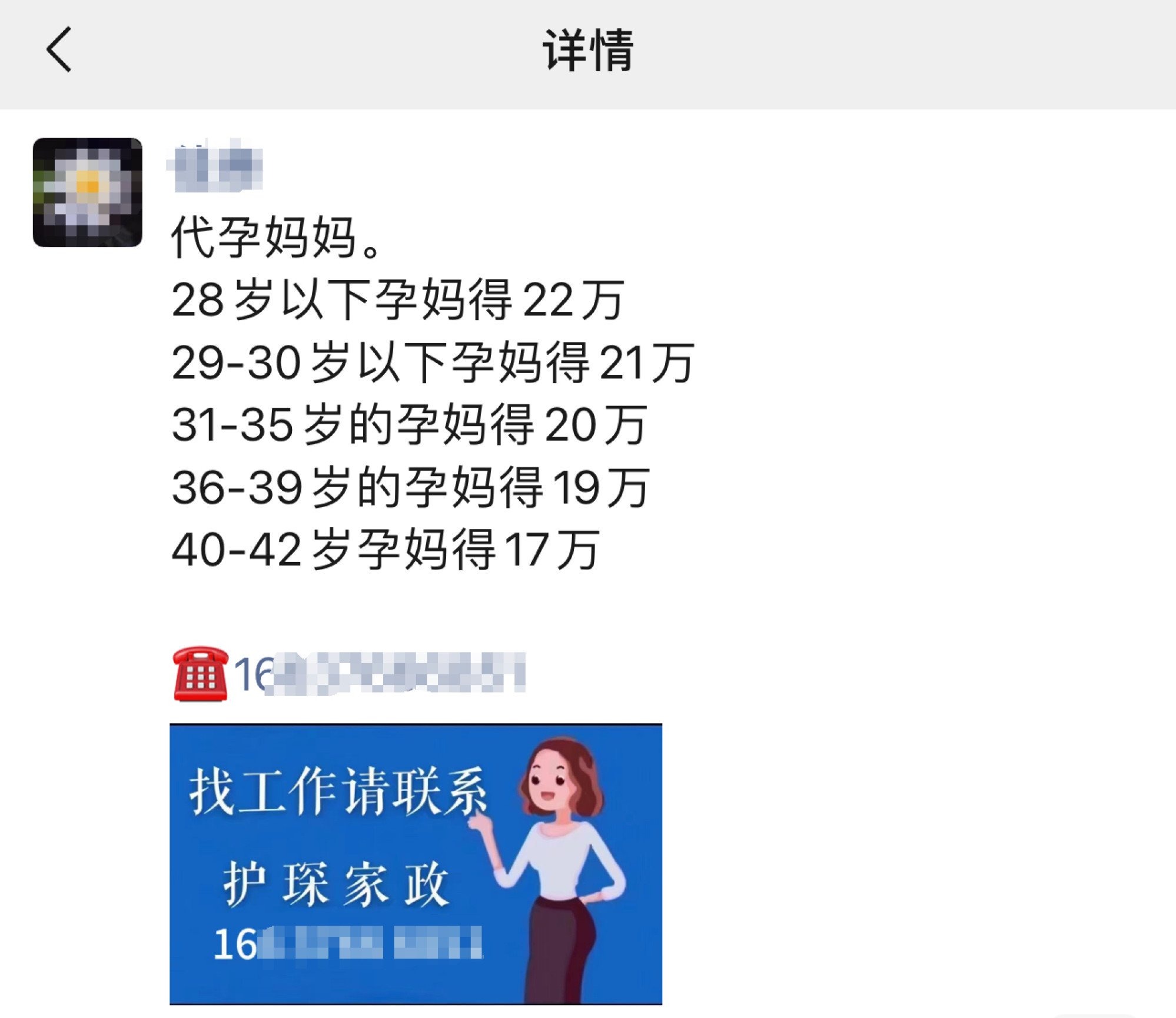 Ngoài thông tin về việc cung cấp những người mang thai hộ ở độ tuổi trên, công ty cũng cho biết, những người mang thai hộ có độ tuổi lớn hơn giới hạn trong khoảng 40-42 tuổi sẽ được trả số tiền là 170.000 nhân dân tệ (583 triệu đồng).