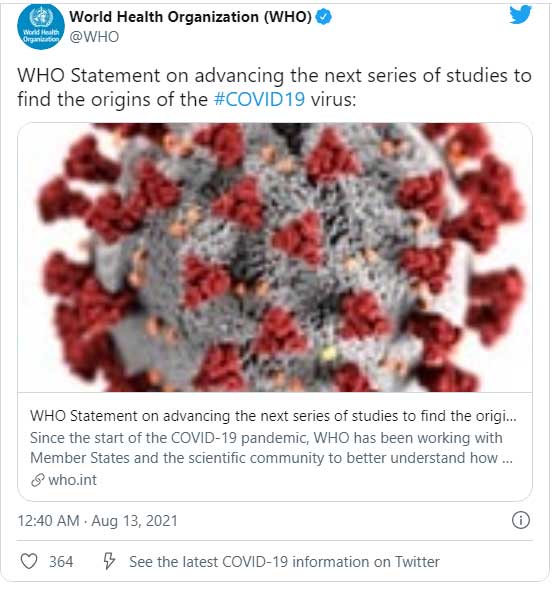 Trong khi đó, theo lời Tổng Giám đốc WHO Tedros Adhenom Ghebreyesus, tổ chức này "cam kết tuân thủ khoa học và kêu gọi các nước gạt bỏ bất đồng, hợp tác cùng nhau để cung cấp tất cả dữ liệu và quyền truy cập cần thiết để các nghiên cứu tiếp theo được triển khai sớm nhất có thể".