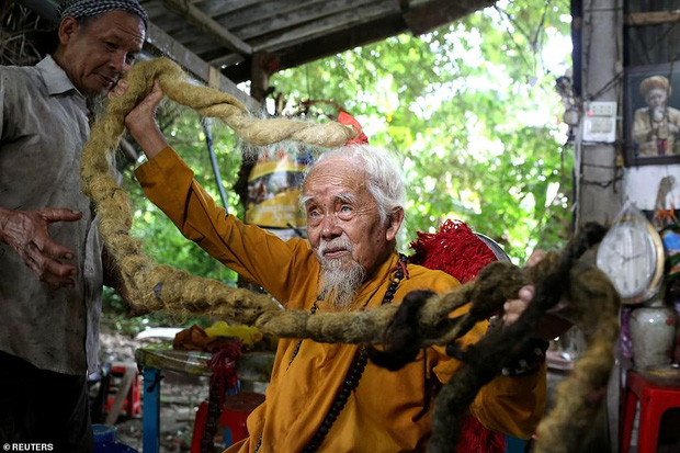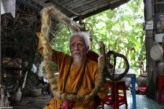 Ông Nguyen Van Chien, sống ở vùng đồng bằng sông Cửu Long, Việt Nam năm nay 92 tuổi nhưng suốt 80 năm qua, cụ ông chưa một lần cắt tóc bởi niềm tin mãnh liệt rằng ông sẽ chết nếu cắt bỏ mái tóc của mình, theo tờ Daily Mail viết.