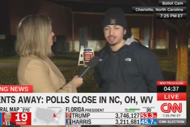"Tôi định không đi bỏ phiếu, cho tới khi bạn gái liên tục gọi điện giục tôi làm điều đó. Nếu không làm vậy, cô ấy sẽ chia tay tôi, vậy nên giờ tôi ở đây," cử tri Bryan Flores trả lời câu hỏi của phóng viên CNN sau khi bỏ phiếu tại Charlotte.