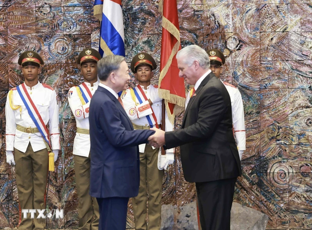 Theo đặc phái viên TTXVN, tối 26-9 theo giờ địa phương, tại Cung Cách mạng ở thủ đô La Habana, sau khi kết thúc tốt đẹp cuộc hội đàm, Bí thư thứ nhất Đảng Cộng sản Cuba, Chủ tịch nước Cuba Miguel Díaz-Canel Bermúdez đã chủ trì buổi lễ trao Huân chương Jose Marti cho Tổng Bí thư, Chủ tịch nước Tô Lâm.