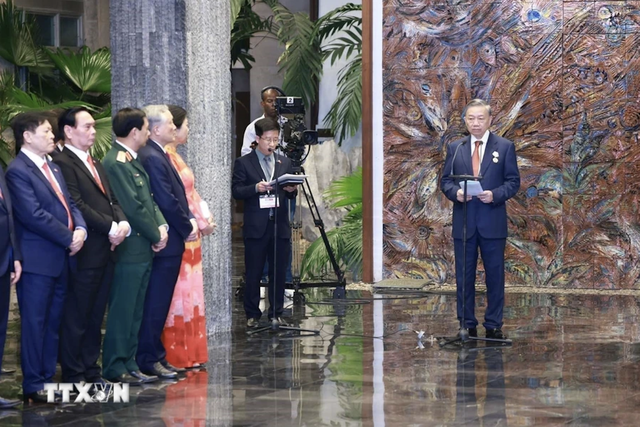 Phát biểu tại buổi lễ, Tổng Bí thư, Chủ tịch nước Tô Lâm bày tỏ xúc động và vinh dự được đón nhận Huân chương cao quý nhất của Đảng và Nhà nước Cuba do Bí thư thứ nhất, Chủ tịch nước Miguel Díaz-Canel Bermúdez trực tiếp trao tặng.