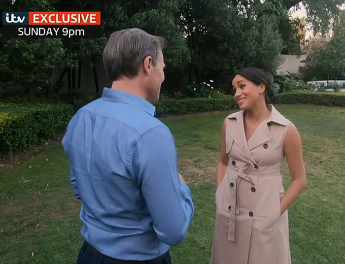 Cũng trong chuyến đi, Meghan tiết lộ cô "đang tồn tại chứ không thực sự sống", đồng thời có ý chỉ trích hoàng gia đã thờ ơ tới tinh thần, tình cảm của cô. Cô còn nói thêm rằng "không có nhiều người hỏi liệu tôi có ổn không".