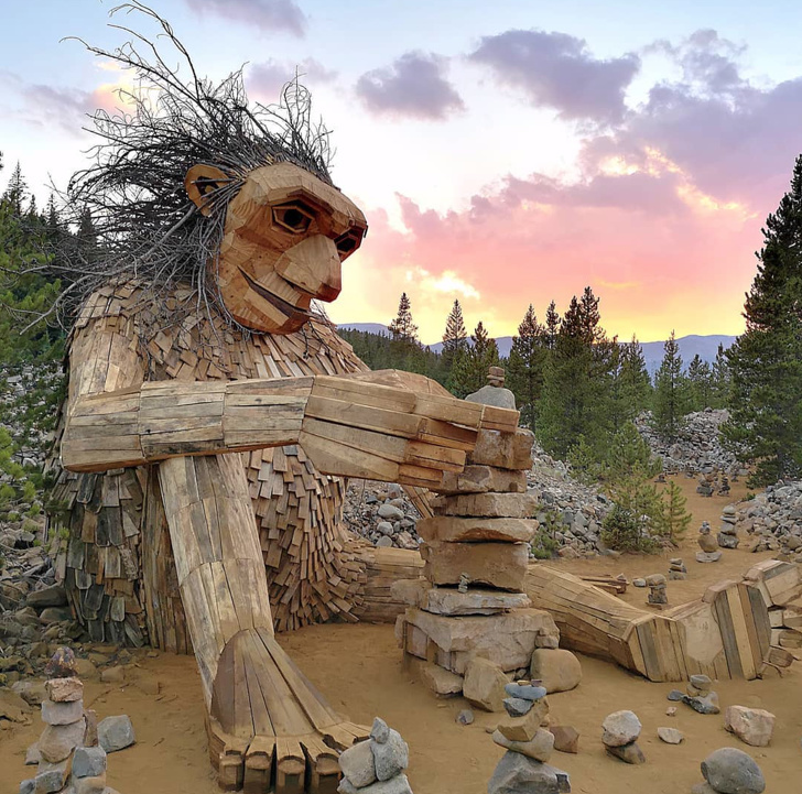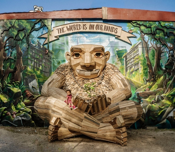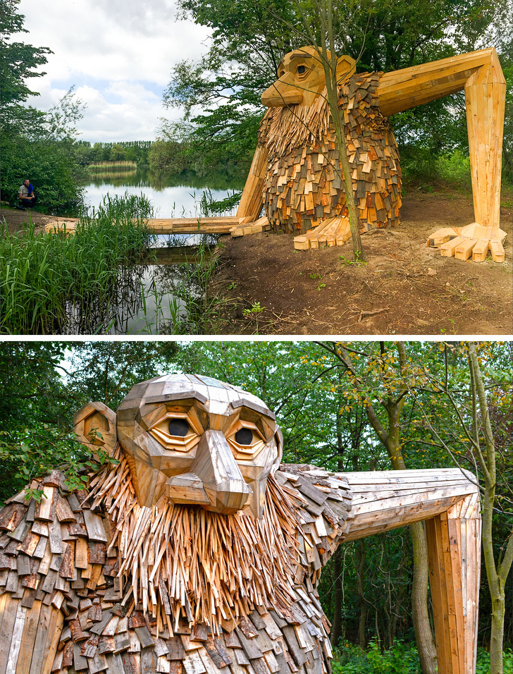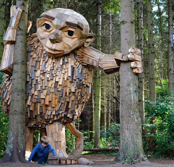 Nghệ sĩ người Đan Mạch Thomas Dambo được biết đến với những tác phẩm điêu khắc ngoài trời đáng kinh ngạc, nó mô tả hình dáng những con quỷ khổng lồ hoặc thậm chí là các nhân vật trong thần thoại. Điều thú vị trong các tác phẩm của anh chính là phế liệu gỗ. Dambo đã cùng các cộng sự của mình thu thập gỗ vụn từ nhiều nơi rồi cắt ghép chúng thành những bức tượng khổng lồ đầy ấn tượng và đặt ở nhiều nơi hoang vắng hoặc trong các khu rừng nhằm mục đích đem nghệ thuật ra khỏi viện bảo tàng, đưa du khách đến gần với thiên nhiên tươi đẹp bị lãng quên, đồng thời mang lại những trải nghiệm thú vị và khác biệt.