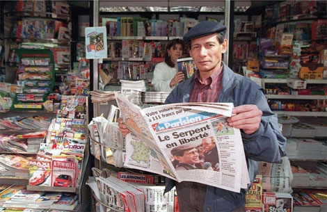 Sobhraj đọc bài báo viết về mình trên tờ Người Paris. |