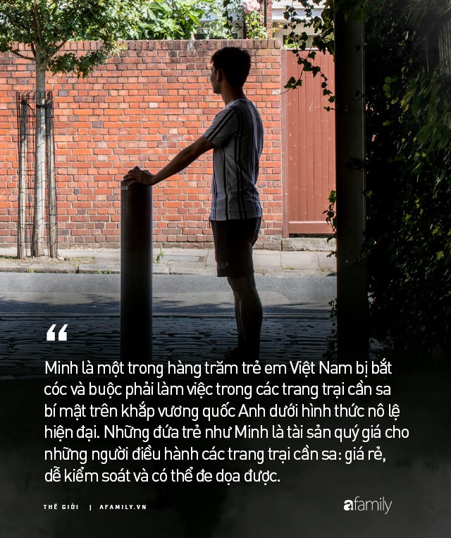 Minh là một trong hàng trăm trẻ em Việt Nam bị bắt cóc và buộc phải làm việc trong các trang trại cần sa bí mật trên khắp vương quốc Anh dưới hình thức nô lệ hiện đại. Những đứa trẻ như Minh là tài sản quý giá cho những người điều hành các trang trại cần sa: giá rẻ, dễ kiểm soát và có thể đe dọa được.
