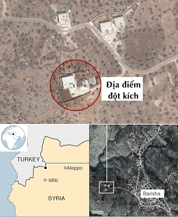 Các quan chức tình báo Mỹ "xác định" vị trí chính xác của y hai tuần trước: một khu nhà nhỏ ở ngoài làng Barisha ở Idlib, cách biên giới Thổ Nhĩ Kỳ 5 km về phía nam. Chiến dịch hôm 26/10 được Trump chấp thuận vào sáng hôm đó, sau khi ông nhận được "thông tin tình báo đáng để hành động", Phó Tổng thống Mỹ Mike Pence cho biết.