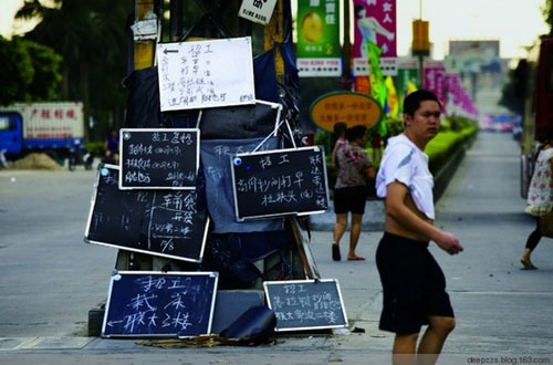 | Có thể dễ dàng bắt gặp những tấm bảng đăng tin tuyển người rải rác khắp nơi trong tỉnh Quảng Đông. |