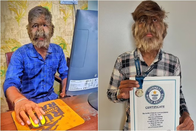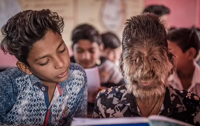 Lalit Patidar (18 tuổi) sống tại Ratlam, bang Madhya Pradesh, Ấn Độ, mắc một căn bệnh hiếm gặp có tên gọi "hội chứng người sói" (hypertrichosis).