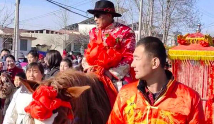 Ngày 6/2, cụ ông họ Lý ở thành phố Tế Ninh (Sơn Đông, Trung Quốc) vui vẻ khoác lên bộ đồ tân lang màu đỏ, đeo chùm hoa kết hỷ, cưỡi ngựa đến đón cô dâu 48 tuổi của mình. Tân nương bước lên kiệu hoa, được nâng lên theo chồng về nhà.