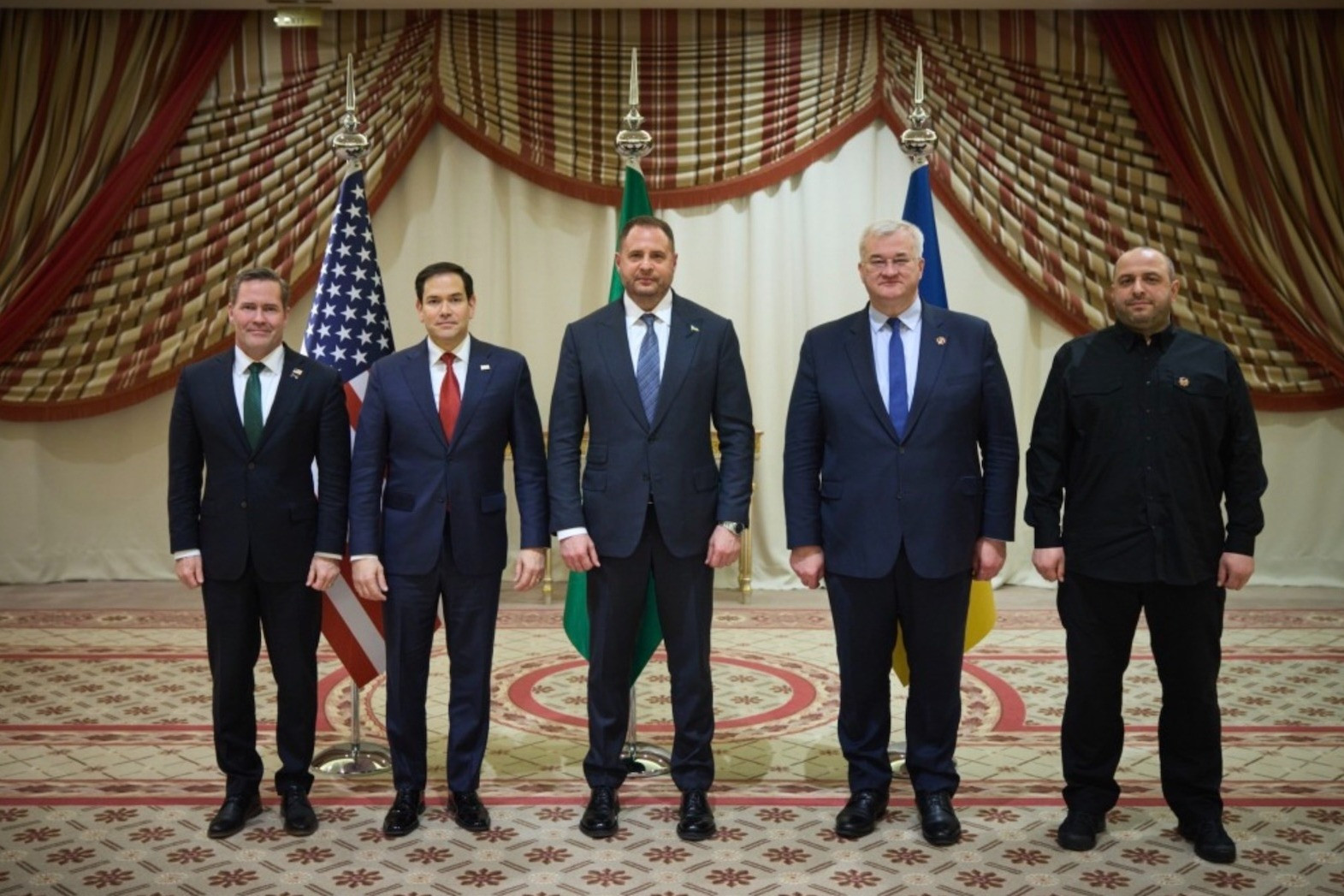 Phái đoàn Ukraine do Andrii Yermak, cố vấn thân cận của Tổng thống Zelensky dẫn đầu, trong khi phái đoàn Nga do Grigory Karasin, Chủ tịch Ủy ban các vấn đề quốc tế thuộc Hội đồng liên bang và Sergei Beseda, cố vấn của lãnh đạo Cơ quan an ninh FSB dẫn đầu. Trong khi đó, phái đoàn Mỹ gồm Ngoại trưởng Marco Rubio, đặc phái viên Mỹ tại Trung Đông Steve Witkoff và Cố vấn an ninh quốc gia Mike Waltz.