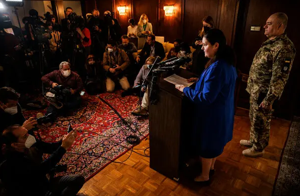 Trong cuộc họp báo hôm 24/02, đại sứ Markarova nói: "Trước khi tôi tới đây, chúng tôi nhận được thông tin từ tổng tư lệnh rằng một trong các tiểu đội của lữ đoàn cơ giới 74 từ tỉnh Kemerovo đã đầu hàng".