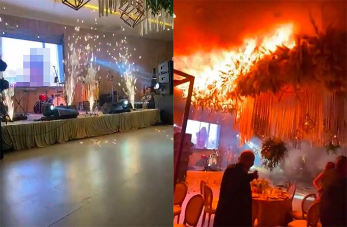 Theo Daily Star, thay vì tạo hiệu ứng đẹp mắt, tưng bừng như mong muốn của tân lang, tân nương, dàn pháo hoa trên sân khấu một đám cưới ở Mexico tuần trước gây ra trận hỏa hoạn lớn. Ngọn lửa ban đầu chỉ ở phần rèm nhưng nhanh chóng lan ra xung quanh, bắt vào đống hoa khô trang trí trên trần. Lửa bùng to đến mức cả hội trường chốc lát chìm trong màu đỏ và khói khiến hầu hết khách tháo chạy.