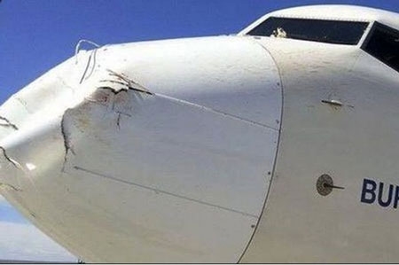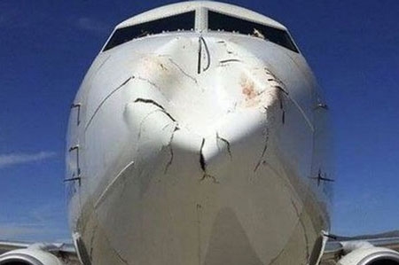 07/05/2015 18:23Đâm phải chim trên trời, đầu máy bay móp méo, biến dạng