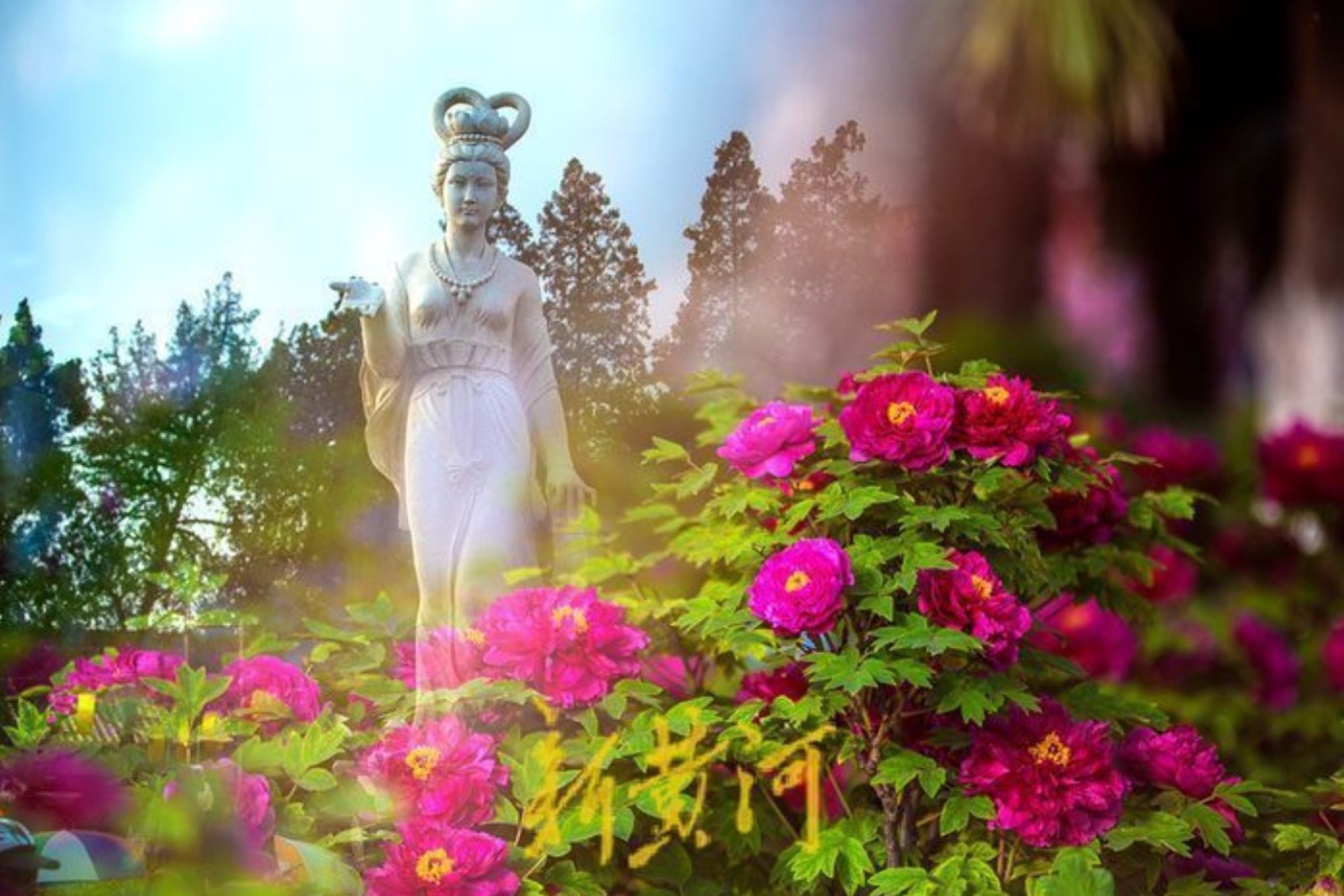 Hai người thợ trên đã có chuyến đi nghiên cứu đến Công viên Vương Thành ở thành phố Lạc Dương, một thành phố lớn trong tỉnh nổi tiếng với hoa mẫu đơn và chụp ảnh các bức tượng Tiên nữ Mẫu Đơn làm tài liệu tham khảo cho tác phẩm điêu khắc.
