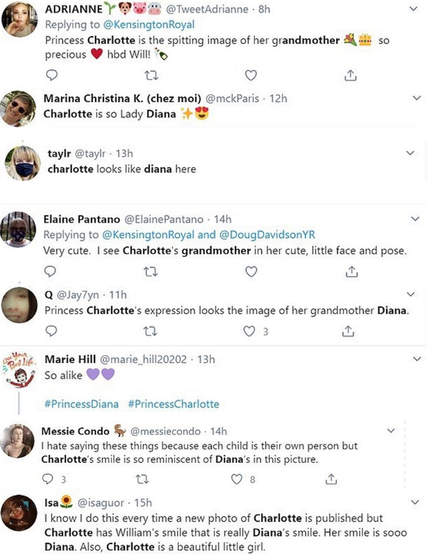 "Nhìn nụ cười ấy đi, có mỗi tôi hay có ai nhận ra sự giống nhau giữa công nương Diana và công chúa Charlotte không?"