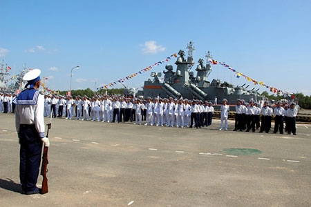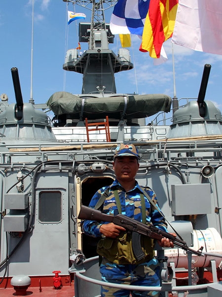 Chiến sĩ hải quân thực hiện nghi thức thượng cờ, chính thức đưa hai tàu tấn công tên lửa vào hoạt động huấn luyện, nâng cao sức mạnh chiến đấu bảo vệ chủ quyền biển đảo và vùng đặc quyền kinh tế của Tổ quốc. |