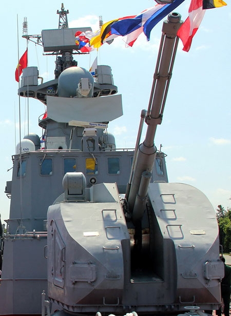 Dàn pháo hạm tự động AK - 176M, cự ly bắn khoảng 15 km, cao 11 km và tốc độ khoảng 120-130 viên mỗi phút được đánh giá rất cao. |