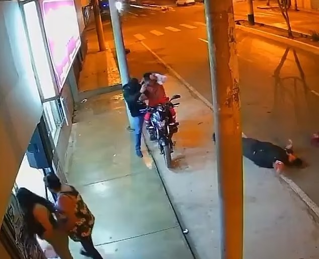 Trong khi Meza cố gắng chụp lấy chiếc mũ bảo hiểm thì tên còn lại giơ súng nhằm đe dọa nạn nhân.