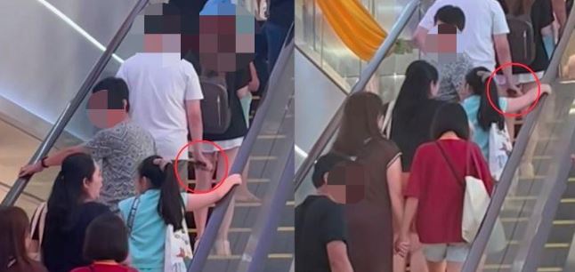 Su Sern Chie cho biết, vợ chồng anh phát hiện một người đàn ông đang đi cùng vợ con nhưng vẫn giở trò phản cảm, quay lén chị em mặc váy ngắn ở trung tâm thương mại.