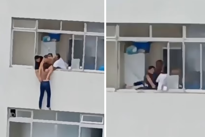 Trong video, có thể thấy người dọn dẹp cố gắng với tay vào bệ cửa sổ để kéo mình vào trong nhưng không được. Cảnh tượng này khiến nhiều người chứng kiến không khỏi thót tim.