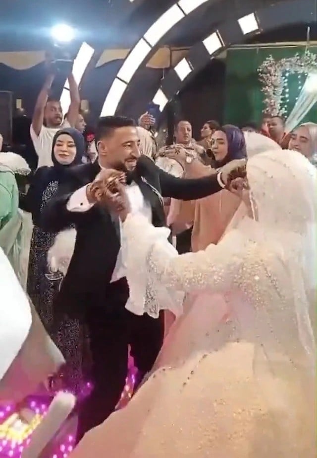 Đoạn video được khách dự tiệc ghi lại cho thấy, trước khi biến cố ập tới, chú rể Ashraf đang nắm tay cô dâu nhảy múa cùng gậy Saidi, vốn là đạo cụ truyền thống trong những điệu nhảy dân gian của Ai Cập.