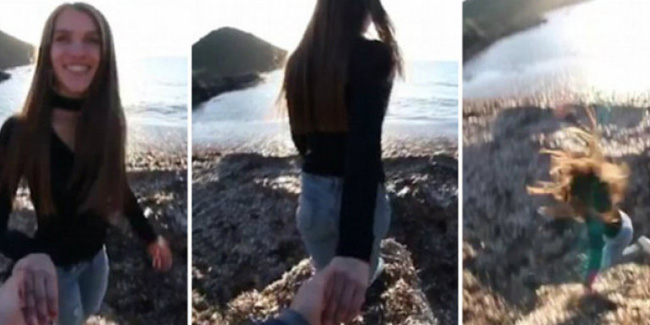 Khi cô gái xinh đẹp quay mặt về phía chàng trai thì người đàn ông này bất ngờ dùng tay đẩy mạnh khiến cô gái ngã xuống vách đá, úp mặt xuống dưới đất bất tỉnh. Kết thúc video, chàng trai còn giơ ngón tay cái thể hiện sự chiến thắng đắc ý. Một cuộc dạo chơi lãng mạn trên bờ biển bỗng chốc lại trở thành bộ phim kinh dị với hành động đầy phũ phàng của chàng trai.