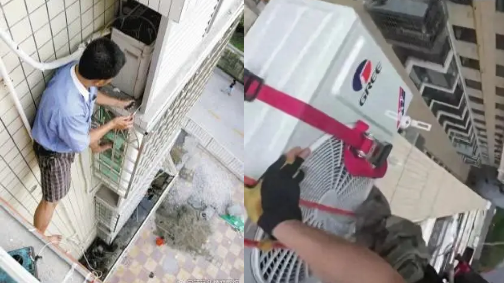 Chủ cửa hàng sửa chữa điều hòa cho biết, quy trình lắp đặt và tháo dỡ điều hòa thường được thực hiện bởi hai người và luôn được trang bị đầy đủ các thiết bị bảo hộ như dây an toàn, đai an toàn.