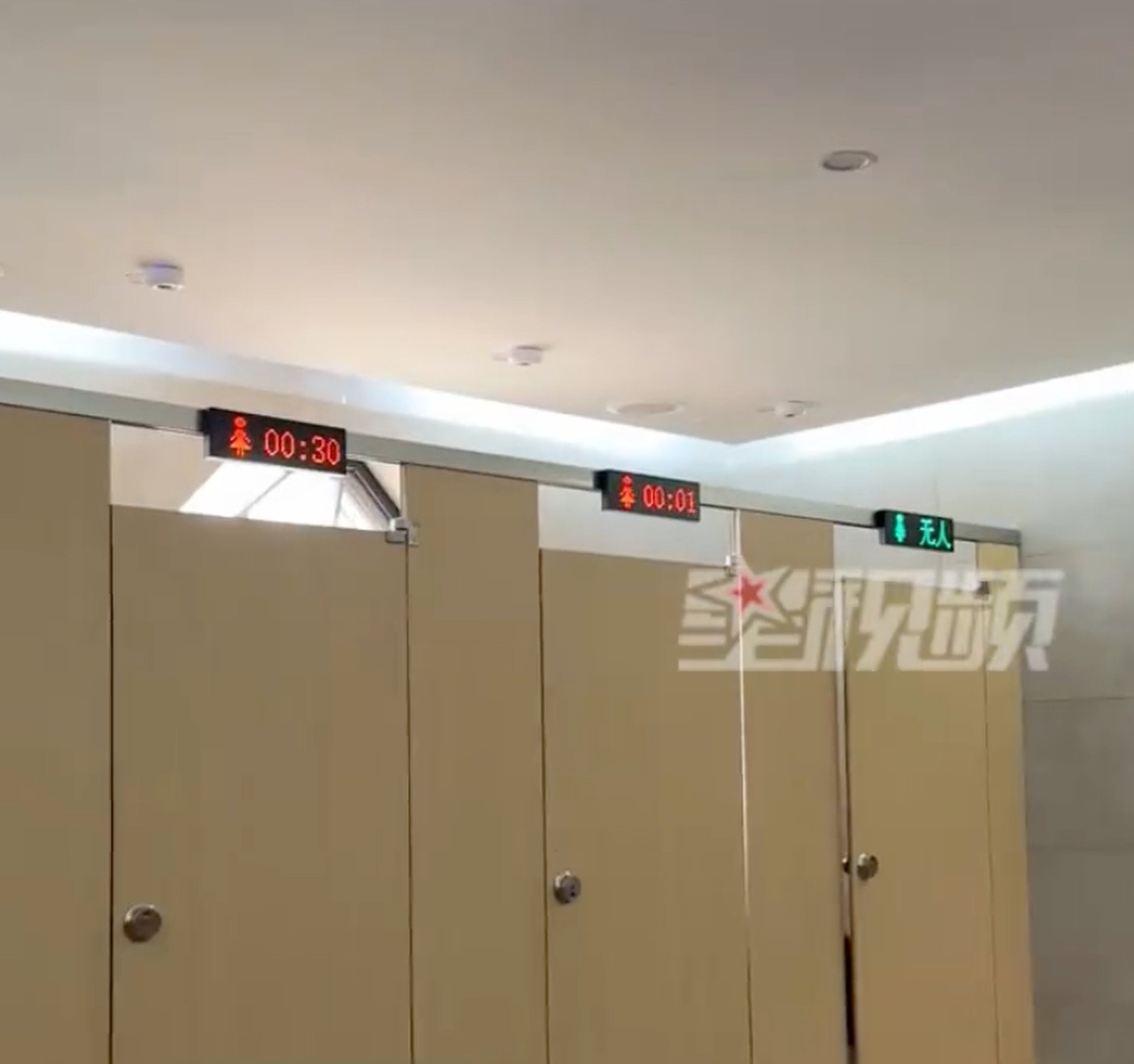 Một đoạn video được chia sẻ trên nhiều trang tin tức và mạng xã hội của Trung Quốc cho thấy một bộ hẹn giờ được lắp đặt phía trên một dãy buồng vệ sinh nữ, trong đó mỗi buồng có bộ đếm kỹ thuật số riêng.