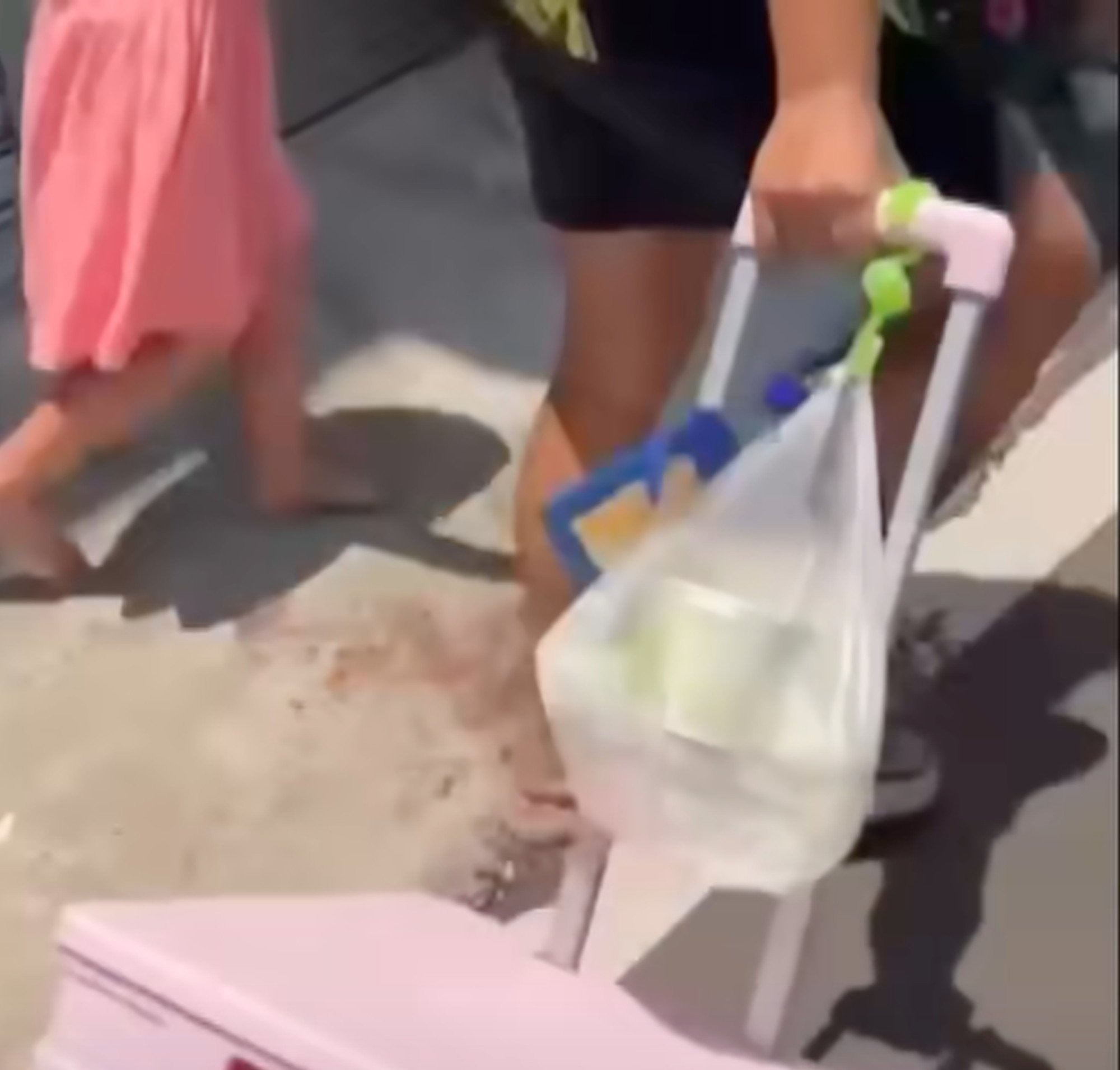 Bé gái sau đó vừa đi vừa khóc và than với mẹ về bàn chân đau rát vì quá nóng nhưng người phụ nữ vẫn bỏ ngoài tai và nắm tay đứa trẻ lôi đi.