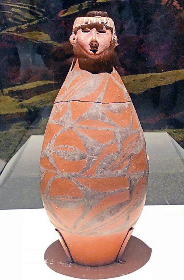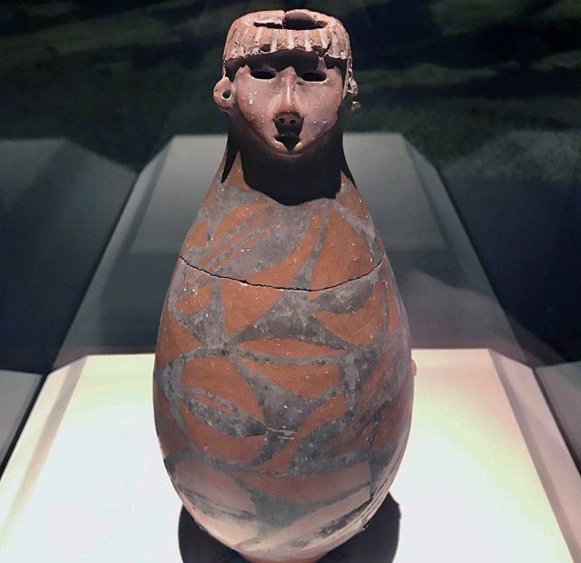 Sau khi các chuyên gia nghiên cứu, kiểm định nguồn gốc của chiếc bình đã được làm rõ. Chiếc bình gốm có miệng hình đầu người, đồ gốm vẽ kiểu văn hóa Ngưỡng Thiều. Nó được khai quật ở làng Shaodian, thị trấn Qinan, tỉnh Cam Túc, được làm từ gốm đất sét đỏ mịn. Chiều cao là 31,8 cm, đường kính 4,5 cm và đường kính đáy là 6,8 cm.