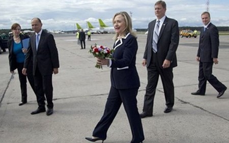 Ngoại trưởng Hillary trong một chuyến công du nước ngoài. |